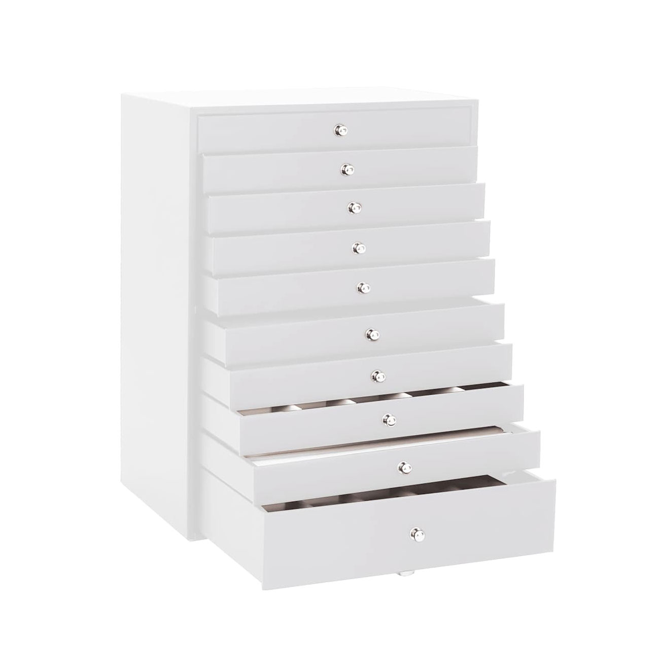 Die obersten sieben Etagen bieten geräumige Schubladen zur Aufbewahrung von Schmuck.